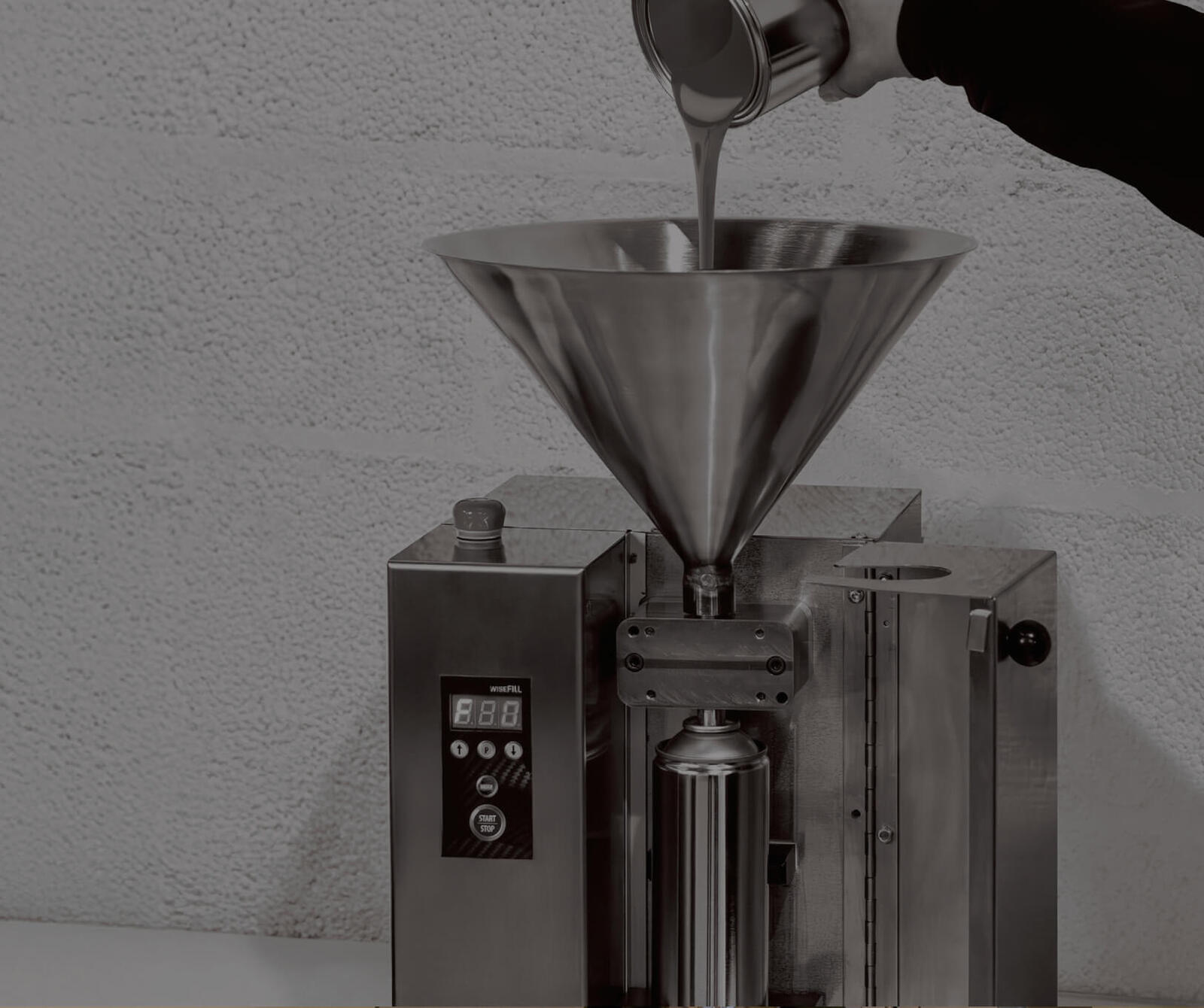 Highly efficient serial filling for high volume fillers. WiseFill is our fastest and most efficient filling solution, capable of filling up to six aerosol cans in a minute with its 1.32 gallon (5 litre) paint container.